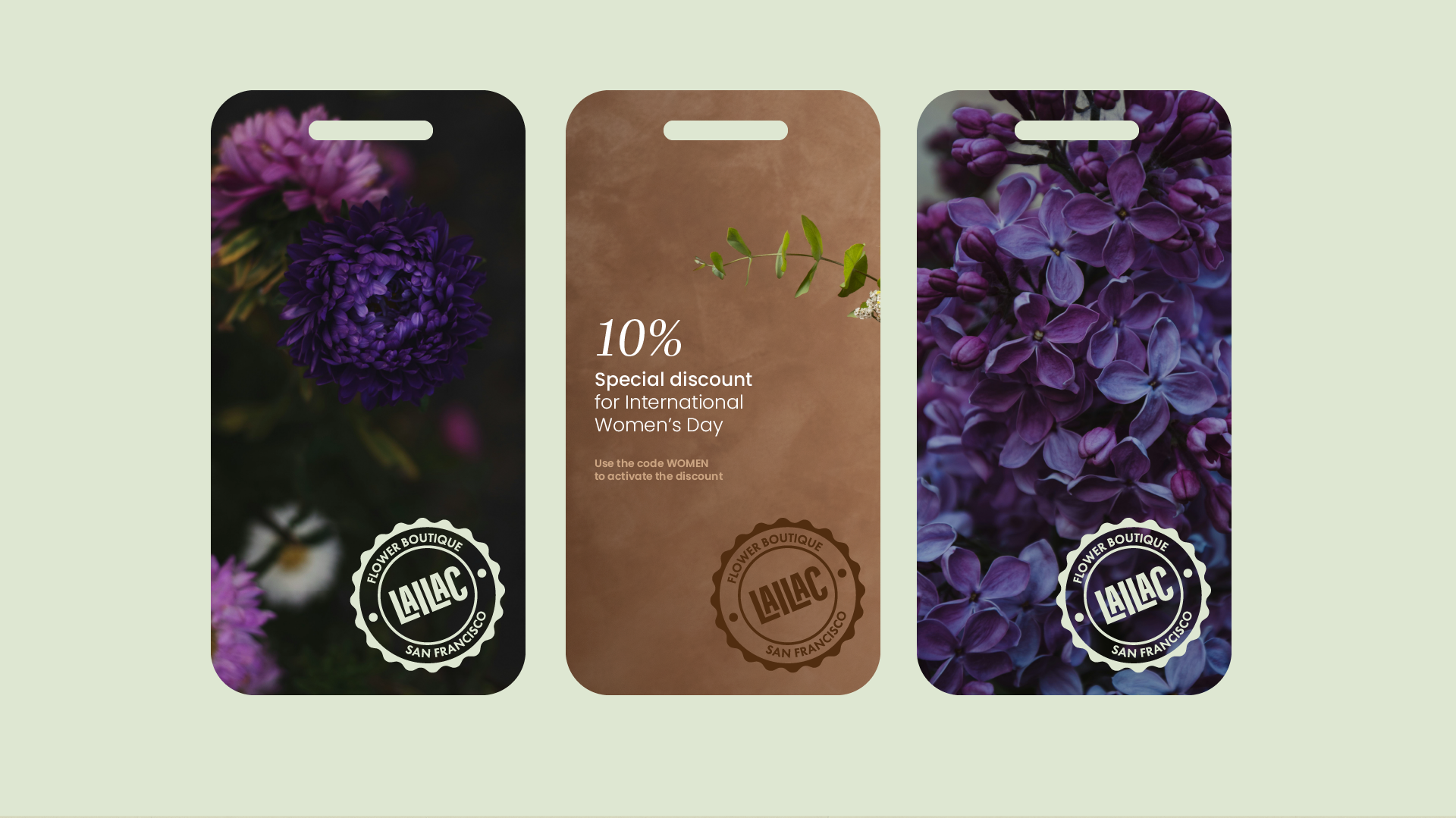 I developed the branding for Lailac, a boutique flower shop rooted in elegance and natural beauty. The identity blends delicate typography, organic forms, and a soft, romantic colour palette to reflect Lailac’s crafty approach to floral design. From the logo to packaging and social media, every element was crafted to evoke a sense of calm, charm, and timeless femininity.